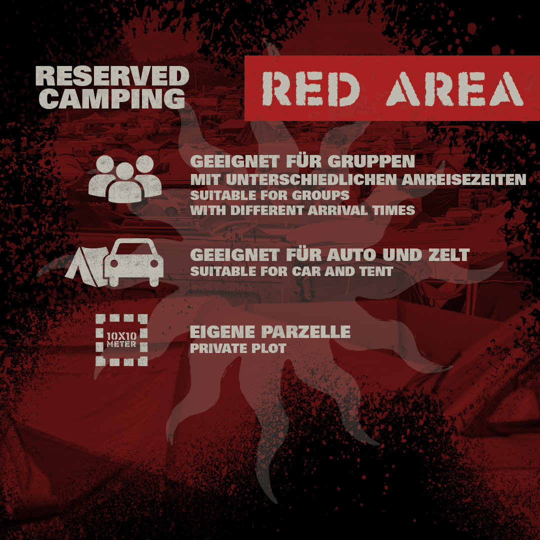 Als Gruppe habt ihr die Möglichkeit in der RED AREA eine Fläche zu reservieren, um eure Anreise einfacher koordinieren zu können.