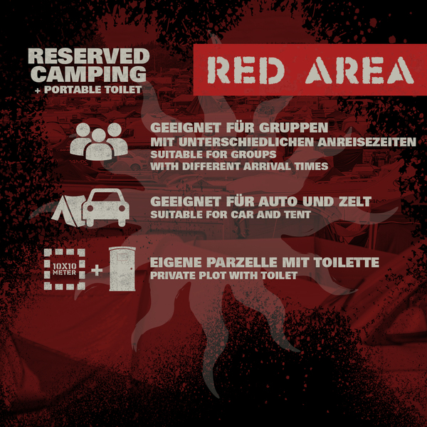 | Red Area - Reserved Camping + portable toilets - 1 Fläche INKL. portable toilet | 389,98 € | |